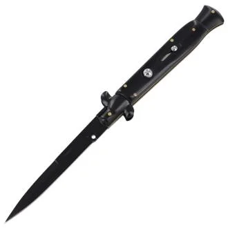 8,75 Zoll schwarzes italienisches Stiletto-Taschenmesser mit Schalter, schwarze Perle